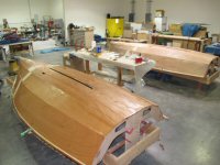 The HADRON Dinghy - developments in the USAA group of enthusiasts in Washington State on the US West Coast have started a project to build five Hadrons. Building of all five is well under way, and the first boat hit the water in early may 2012. Jim Conachen is the leader of the self-build group. His comment after his first sail? - " This boat is a winner!". Now there are 2 boats being built in California. The prospective builders flew over to have a look at my own boat in the UK, and now building is under way. See photos at the bottom of this page. Here are some photos of boats #4 and #5 under construction in Washington. Click on an image to see a larger version.